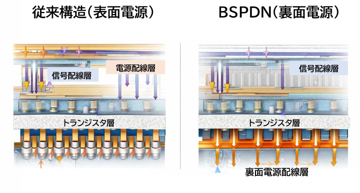 • 面積効率の向上:電源配線が占めていたスペースが解放され、さらなる高密度化が可能になります。