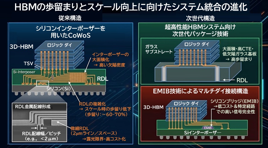 • 構造的転換:性能を決めるのは、チップ単体からHBMやCoWoSなどの先端パッケージへ移行しています。