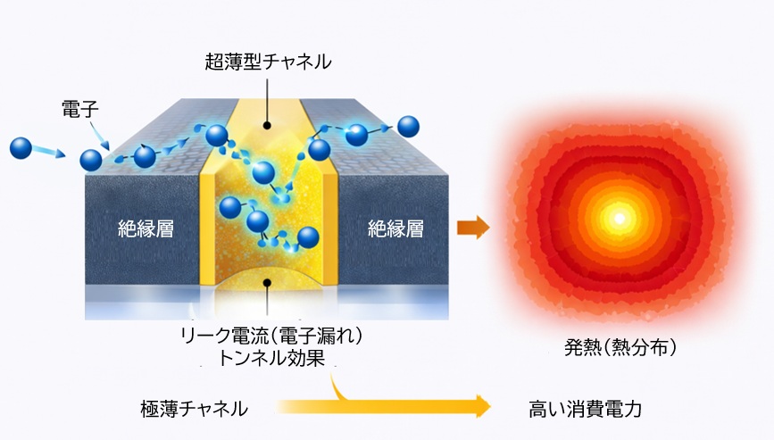 シリコンのチャネルが短く・薄くなりすぎると、スイッチをオフにしても電子が勝手に通り抜けてしまう現象が起きます。