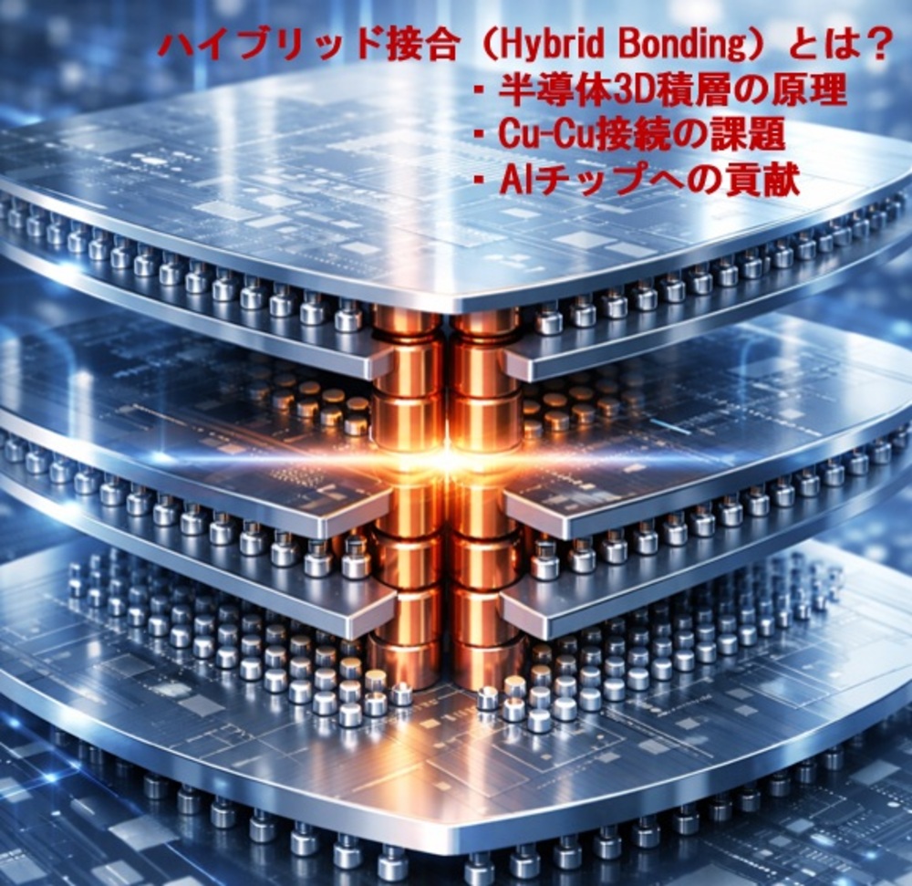 そこで注目されているのが、チップを横ではなく「縦」に積む3D積層技術、そしてその中核となる技術の一つが「ハイブリッド接合(Hybrid Bonding)」です。