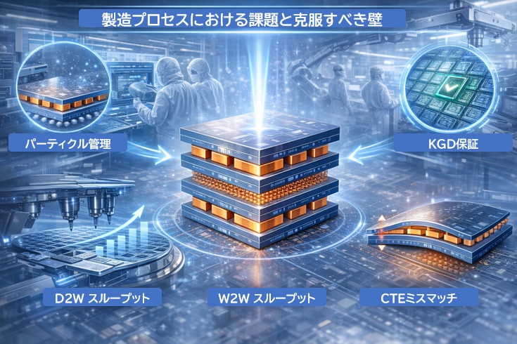 ハイブリッド接合は半導体の性能ロードマップを大きく前進させる技術ですが、量産化には従来の後工程(OSAT)の枠を超える高度な管理が必要です。